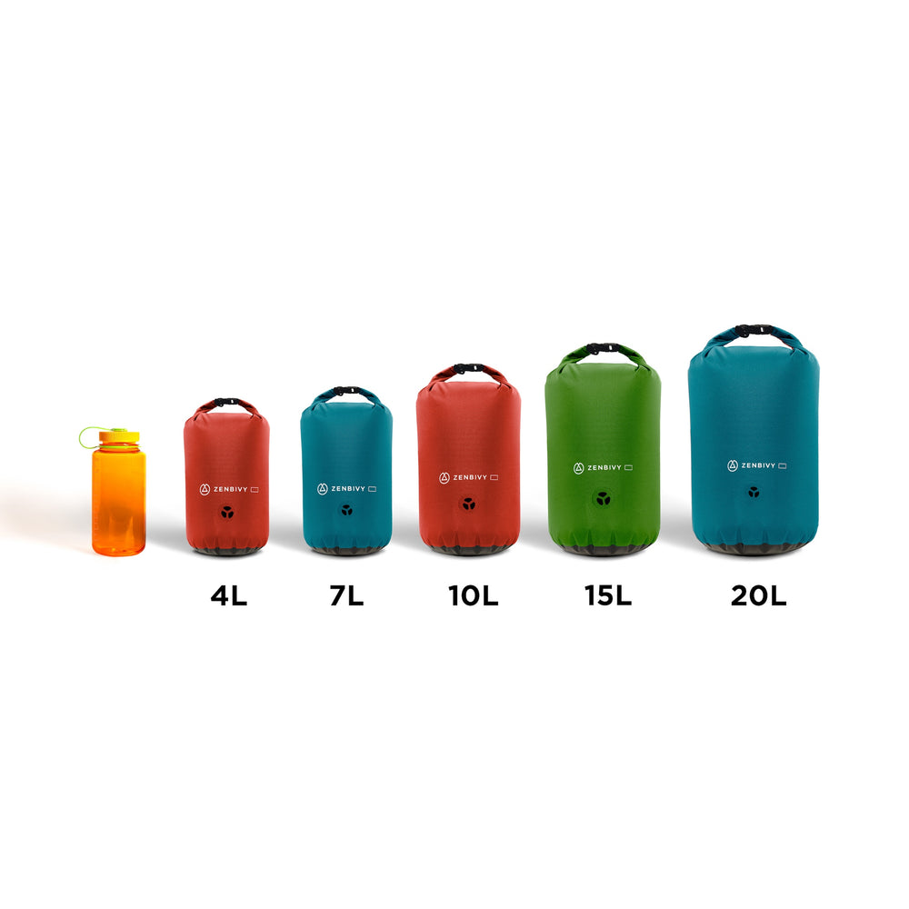 Which size Dry Sack is right for your sleep system? Choose between 4 L, 7 L, 10 L, 15 L or 20 L and match it with the recommended Dry Sack size for your Zenbivy setup below.