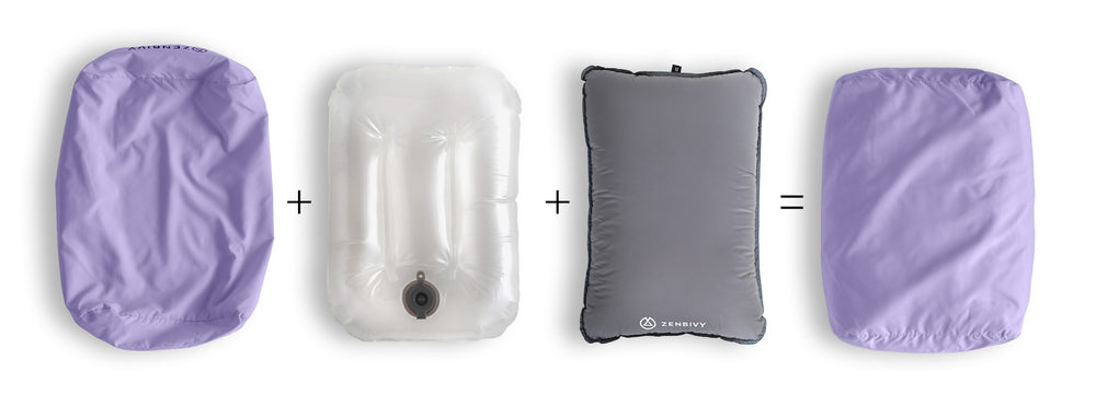 Dürfen wir vorstellen? Das neue Zenbivy SoftTop™Kissen – das einzige modulare Kissen mit maximalem Komfort bei minimalem Gewicht. Das 3-teilige Design umfasst ein individuell anpassbares Luftkissen, eine Daunenkissenfüllung und einen waschbaren Kissenbezug.