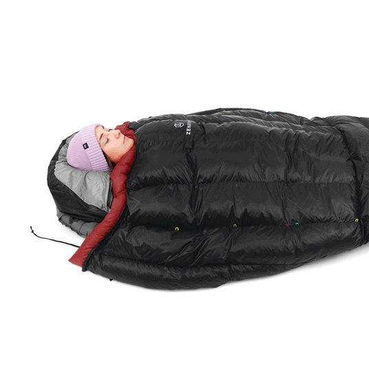 Entdecke, wie unser patentiertes 2-teiliges Design Zugluft blockiert, ohne deine Bewegungsfreiheit einzuschränken – so fühlt sich Schlafen draußen an wie in deinem eigenen Bett zu Hause.