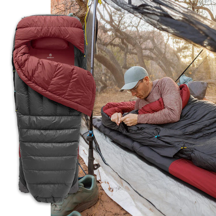 Unser meistverkauftes Schlafsacksystem ist jetzt noch besser. Die Light Beds 2025 verfügen über brandneue, ultra-bequeme Stoffe für noch mehr heimischen Komfort. Kann allein oder mit jedem Zenbivy Sheet verwendet werden. -