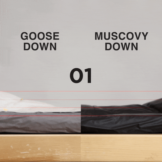 Les plumules de duvet de Muscovy sont exceptionnellement résilientes, ce qui leur permet de « rebondir » rapidement, offrant un gonflant supérieur et une récupération après compression plus rapide.