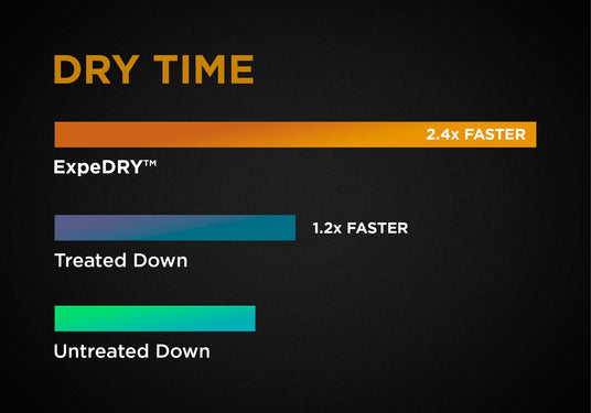 Testing shows ExpeDRY™ dries faster and returns to full loft faster after exposure to humidity, making ExpeDRY™ the first “active insulation” —one that actually accelerates evaporation instead of simply resisting moisture.