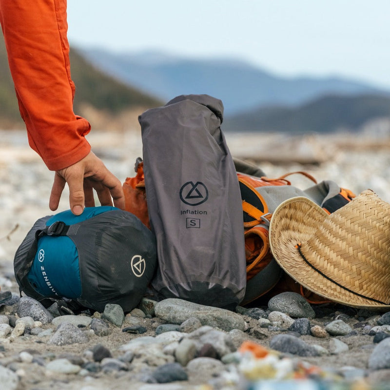 The Zenbivy Dry Sacks feature fully-welded seams for a watertight seal you can trust, instant compression through the high-speed mechanical valve, and durable yet lightweight construction. Our Dry Sacks are compression compatible, not sewn all-in-one. Separate compression will never stress seams, resulting in a more reliably waterproof dry sack. The optional add-on also means you get to choose—leave the dry sack compressed as-is or pair it with our Compression Caps to keep it fully compressed, maximizing precious space in your pack.