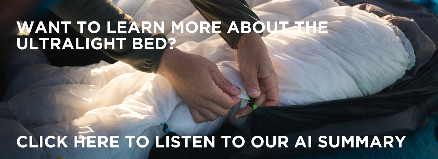 The Zenbivy Ultralight Bed is the most comfortable and full-featured legitimately ultralight backpacking sleep system out there. With soft featherlight fabrics, premium 900FP down, and patented comfort features that are inherently light, it turns out ultralight can be ultra-comfortable.
